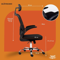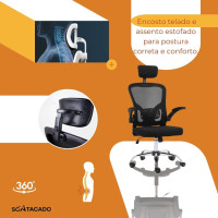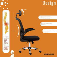 - Encosto confortável: Tela mesh que se adapta à curvatura da coluna para melhor suporte postural