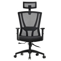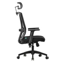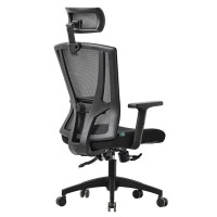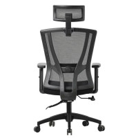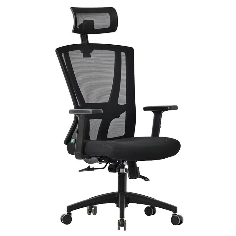 Encosto alto com apoio de cabeça e suporte lombar, que ajudam a manter a postura correta e reduzem o cansaço.