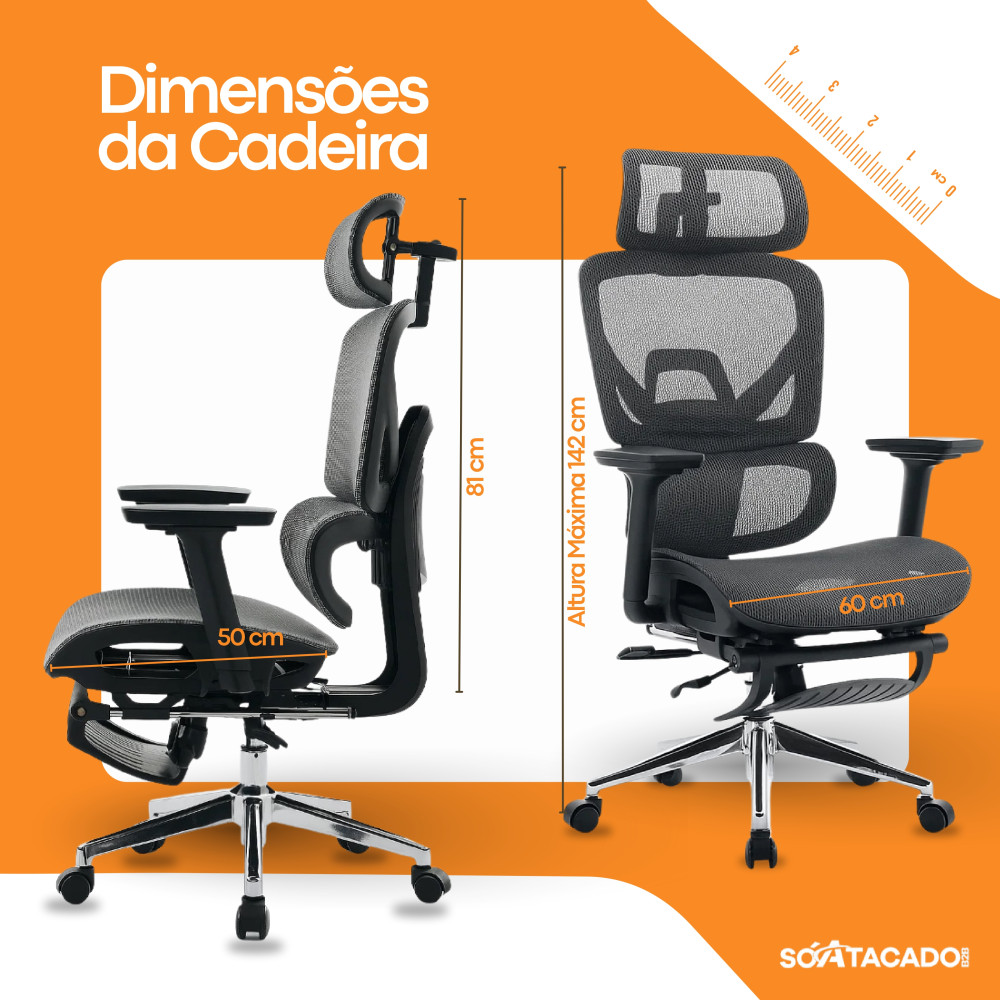 Cadeira Ergonômica Premium com Apoio de Cabeça e Descanso para Pés