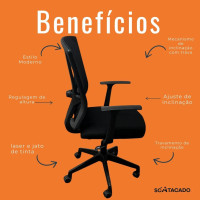 - Inclinação ajustável: Permite inclinar a cadeira para frente e para trás, proporcionando mais flexibilidade e conforto