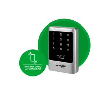 O acesso pode ser feito por senha ou proximidade (RFID 13,56 MHz).