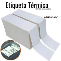 Caixa com 10.000 etiquetas adesivas térmicas de alta qualidade, medindo 10x15 cm, perfeitas para impressão.