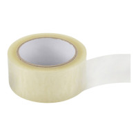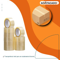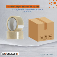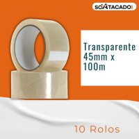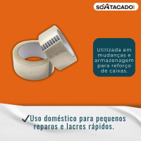 Fita adesiva transparente com 45mm de largura e 100m de comprimento, ideal para fechamento seguro de caixas e pacotes.