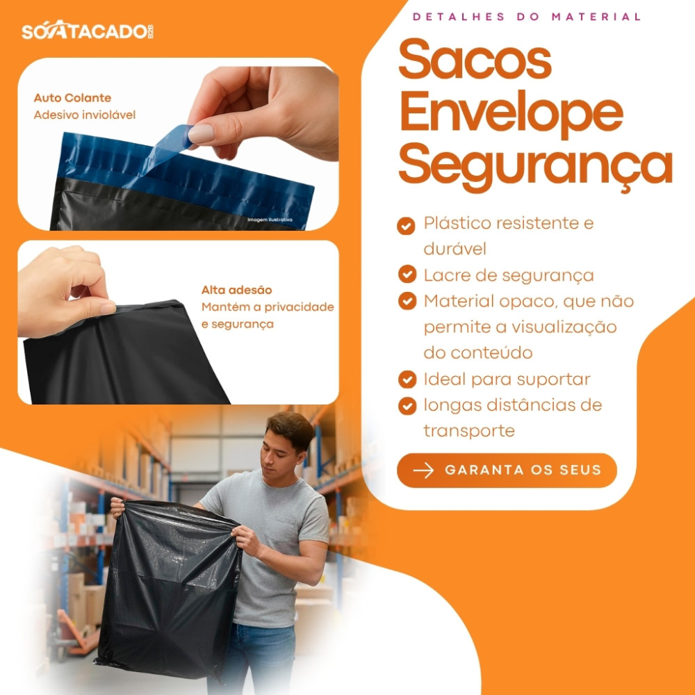 Garanta agora seus Sacos Envelope de Segurança e envie seus produtos com sigilo, praticidade e máxima proteção!